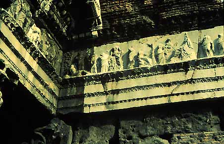 Sullattico si conserva il rilievo di una figura femminile con testa coperta da un elmo e con scudo sorretto dalla sinistra, che era stata identificata nuovamente con Minerva. Nei recenti scavi in occasione del Giubileo, sono tuttavia venuti alla luce frammenti di un altro rilievo con figura femminile, che hanno permesso di ipotizzare piuttosto sullattico una serie di rilievi con le personificazioni delle Province.