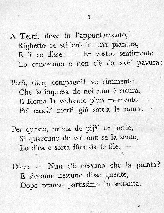 E Roma la vedremo p'un momento Pe' cascà' morti giù sott'a le mura. Pe' questo,